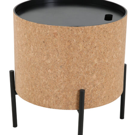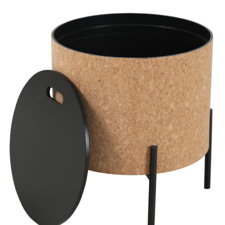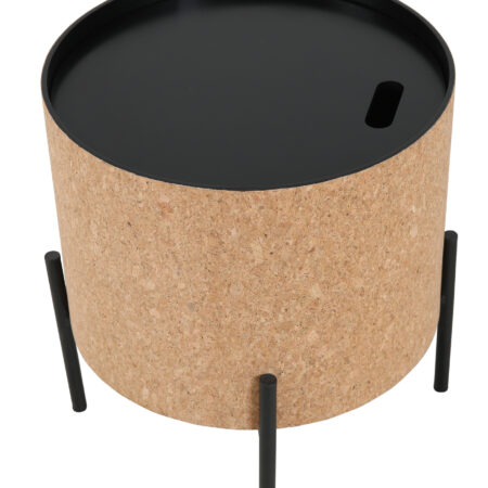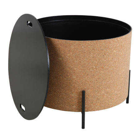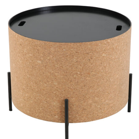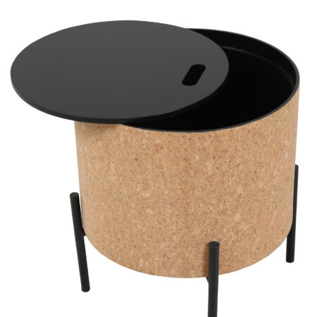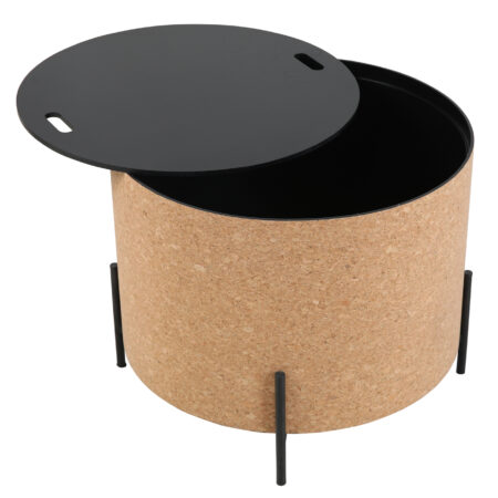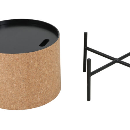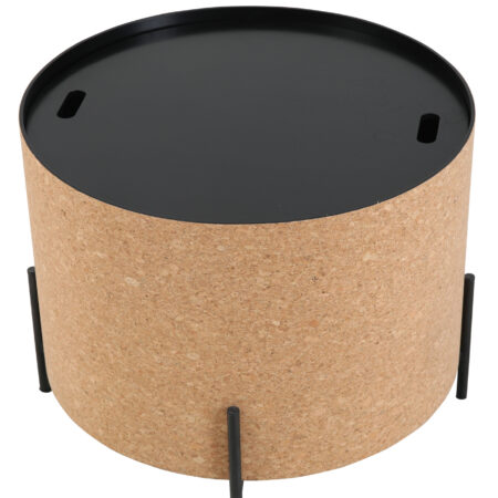 - Coole Kontraste durch die Kombination aus natürlichem Kork und schwarzen Metallbeinen
